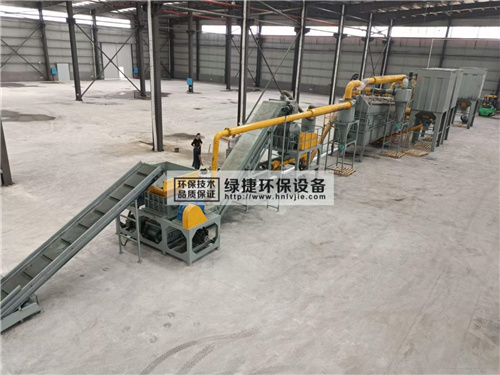 廢舊動(dòng)力電池磷酸鐵鋰極片回收處理設(shè)備安裝調(diào)試現(xiàn)場(chǎng)包括粉碎組件以及篩分組件,粉碎組件用于將物料進(jìn)行撕碎、破碎,篩分組件用于對(duì)撕碎料、破碎料進(jìn)行分類篩選。粉碎組件包括撕碎機(jī)以及破碎機(jī),撕碎機(jī)將外部報(bào)廢的鋰電池極片料和生產(chǎn)邊角料進(jìn)行撕碎,撕碎料通過皮帶輸送至破碎機(jī)進(jìn)行破碎生成破碎料。篩分組件包括滾筒篩、滾筒磁選機(jī)、磨粉機(jī)、振動(dòng)篩以及Z形空氣分選機(jī),滾筒篩將破碎料進(jìn)行篩分,篩下物料為150目以下的黑粉并將篩上的物料由滾筒磁選機(jī)將物料中的鐵分離出,磨粉機(jī)將鐵分離后的物料進(jìn)行磨粉后由振動(dòng)篩進(jìn)行篩選后由所述Z形空氣分選機(jī)選出物料中的纖維類輕質(zhì)物料。