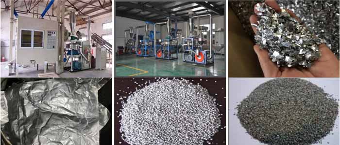 廢舊鋁塑分離回收設(shè)備采用物理破碎靜電分選的方法進(jìn)行分離鋁塑,首先藥板經(jīng)過刀切式破碎機(jī)粗碎成10mm以下的片料,然后進(jìn)入高速水冷渦輪式粉碎機(jī)將片料細(xì)碎成鋁和塑料混合物,經(jīng)旋振篩篩選符合要求的物料利用靜電分選機(jī)原理把鋁和塑料分離開來,不合格的物料返回磨粉機(jī)繼續(xù)粉碎。鋁和塑料的損失量都非常低,鋁的再利用率接近99%以上。本設(shè)備采用完全干式物理分離,不造成二次環(huán)境污染,具有較好的社會和經(jīng)濟(jì)效益。