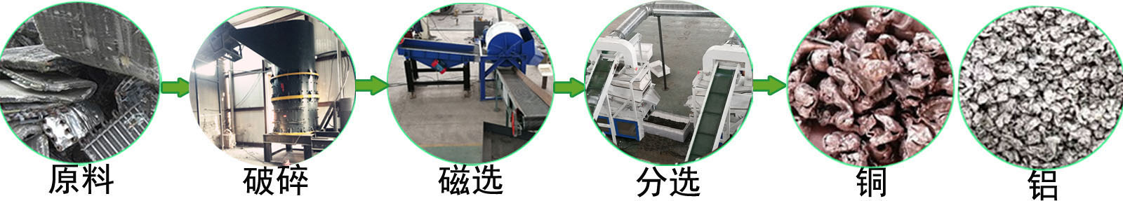 綠捷環(huán)保廢舊空調(diào)散熱器銅鋁分離機新型銅鋁水箱破碎分離生產(chǎn)線是將空調(diào)﹑發(fā)電機等拆解下來的銅鋁散熱器進行回收,分選出其中的銅﹑鐵﹑鋁。散熱器銅鋁水箱破碎分離設(shè)備是通過撕碎機、立式復(fù)合破碎機、磁選機、氣流分選機、比重分選機等一系列設(shè)備的組合應(yīng)用,回收散熱器中的銅、鐵、鋁。將散熱器投入撕碎機,撕碎后的物料通過磁選機分選出鐵,然后剩余的物料進入粉碎系統(tǒng),粉碎后的物料通過分選系統(tǒng),將銅和鋁分離。設(shè)備配有覆蓋式除塵設(shè)備,整個回收過程潔凈無污染。銅分選率>98%,鐵分選率>99%,鋁分選率>98%