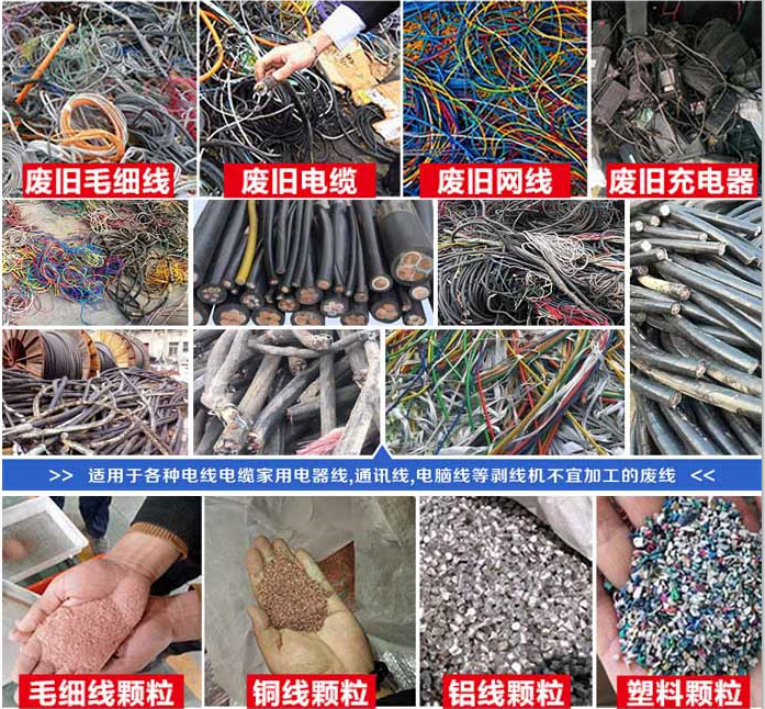 可更換的破碎機(jī)篩網(wǎng)及分選機(jī)篩網(wǎng),可以加工市面上大部分的廢舊電線電纜,例如:家用照明線、網(wǎng)線(CAT5/6)、單芯電纜、工業(yè)用電纜、通信線、單芯鋁線等。